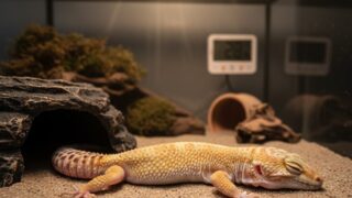 レオパがシェルターの外で寝る理由を解説。ずっと外にいるのはストレス?それとも慣れた証拠?手を伸ばす無防備な姿の意味から、逆にずっとシェルターにいる原因まで網羅。飼い主さんが安心できるようレオパがシェルターの外で寝るときの環境チェックポイントと正しい対処法をまとめます。